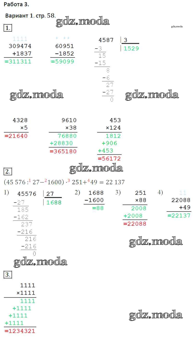 ГДЗ решение к заданию № 58 Математика 4 класс тетрадь для контрольных работ Рудницкая В.Н. Вентана-граф 2018 ФГОС бесплатно на гдз.мода!