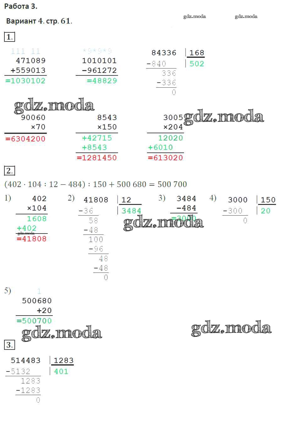 ГДЗ решение к заданию № 61 Математика 4 класс тетрадь для контрольных работ Рудницкая В.Н. Вентана-граф 2018 ФГОС бесплатно на гдз.мода!