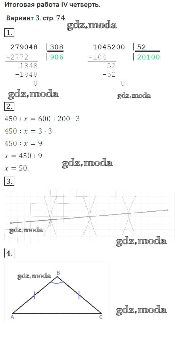 ГДЗ решение к заданию № 74 Математика 4 класс тетрадь для контрольных работ Рудницкая В.Н. Вентана-граф 2018 ФГОС бесплатно на гдз.мода!