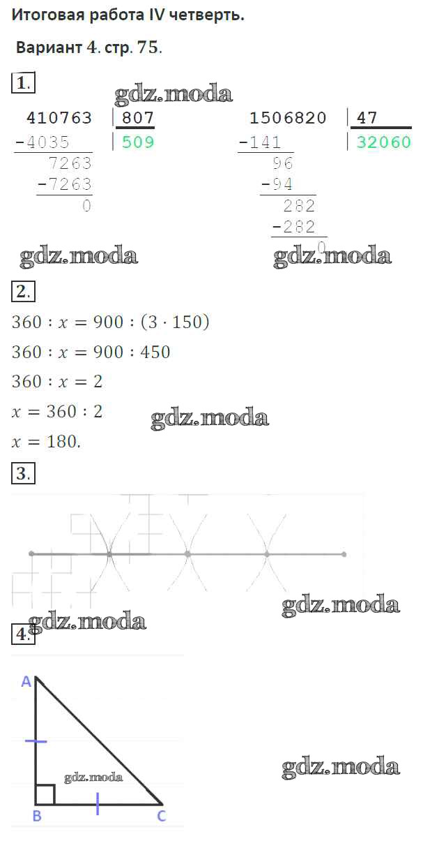 ГДЗ решение к заданию № 75 Математика 4 класс тетрадь для контрольных работ Рудницкая В.Н. Вентана-граф 2018 ФГОС бесплатно на гдз.мода!