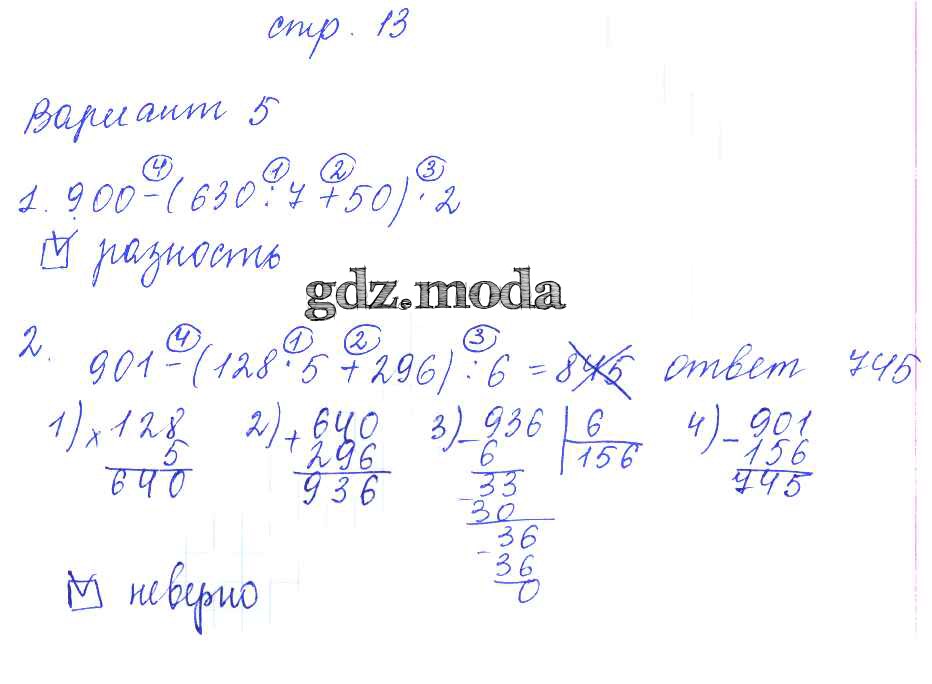 ГДЗ решение к заданию № 13 Математика 4 класс контрольные работы Рудницкая В.Н. (к уч. Моро) Экзамен 2014 Часть 1, Часть 2 ФГОС бесплатно на гдз.мода!