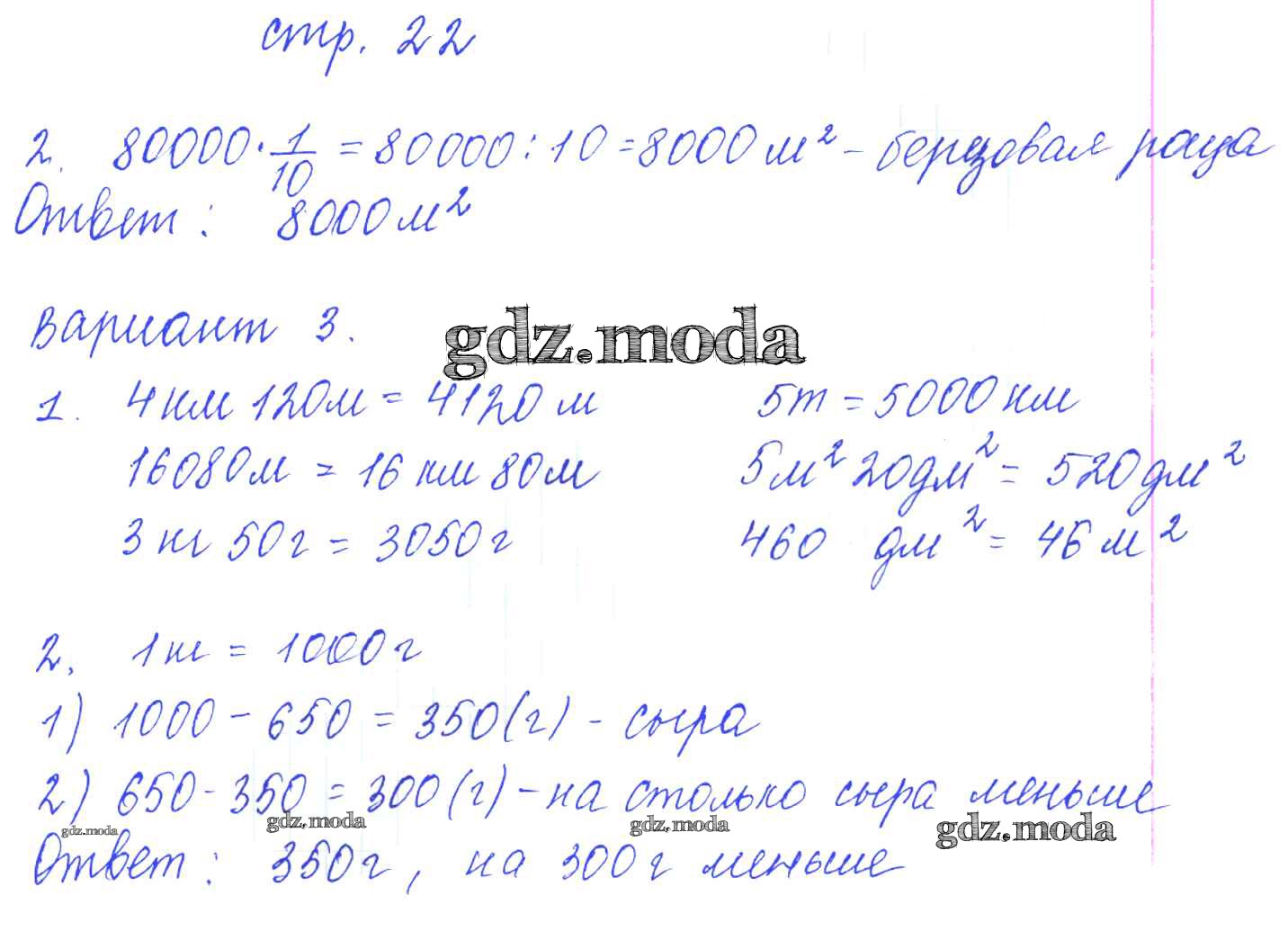 ГДЗ решение к заданию № 22 Математика 4 класс контрольные работы Рудницкая В.Н. (к уч. Моро) Экзамен 2014 Часть 1, Часть 2 ФГОС бесплатно на гдз.мода!