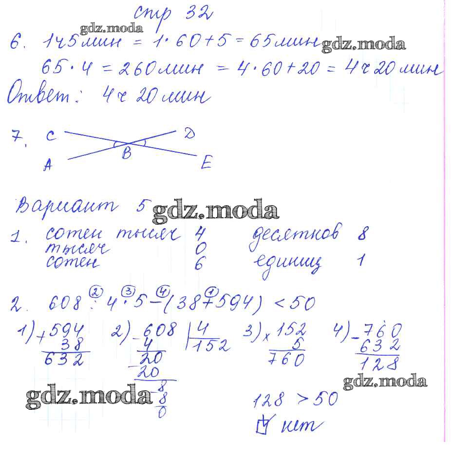 ГДЗ решение к заданию № 32 Математика 4 класс контрольные работы Рудницкая В.Н. (к уч. Моро) Экзамен 2014 Часть 1, Часть 2 ФГОС бесплатно на гдз.мода!