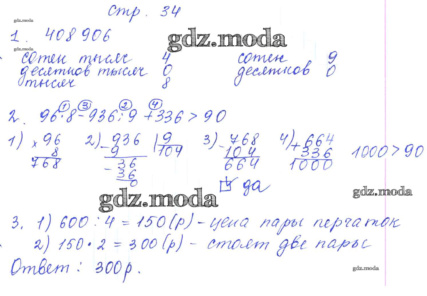 ГДЗ решение к заданию № 34 Математика 4 класс контрольные работы Рудницкая В.Н. (к уч. Моро) Экзамен 2014 Часть 1, Часть 2 ФГОС бесплатно на гдз.мода!