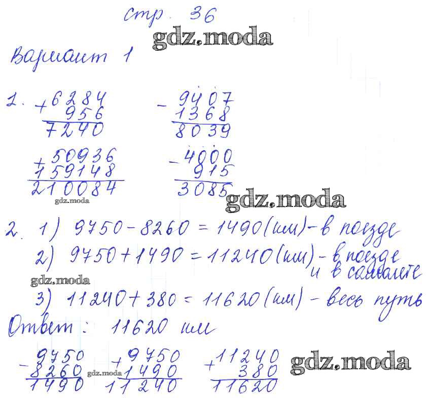 ГДЗ решение к заданию № 36 Математика 4 класс контрольные работы Рудницкая В.Н. (к уч. Моро) Экзамен 2014 Часть 1, Часть 2 ФГОС бесплатно на гдз.мода!