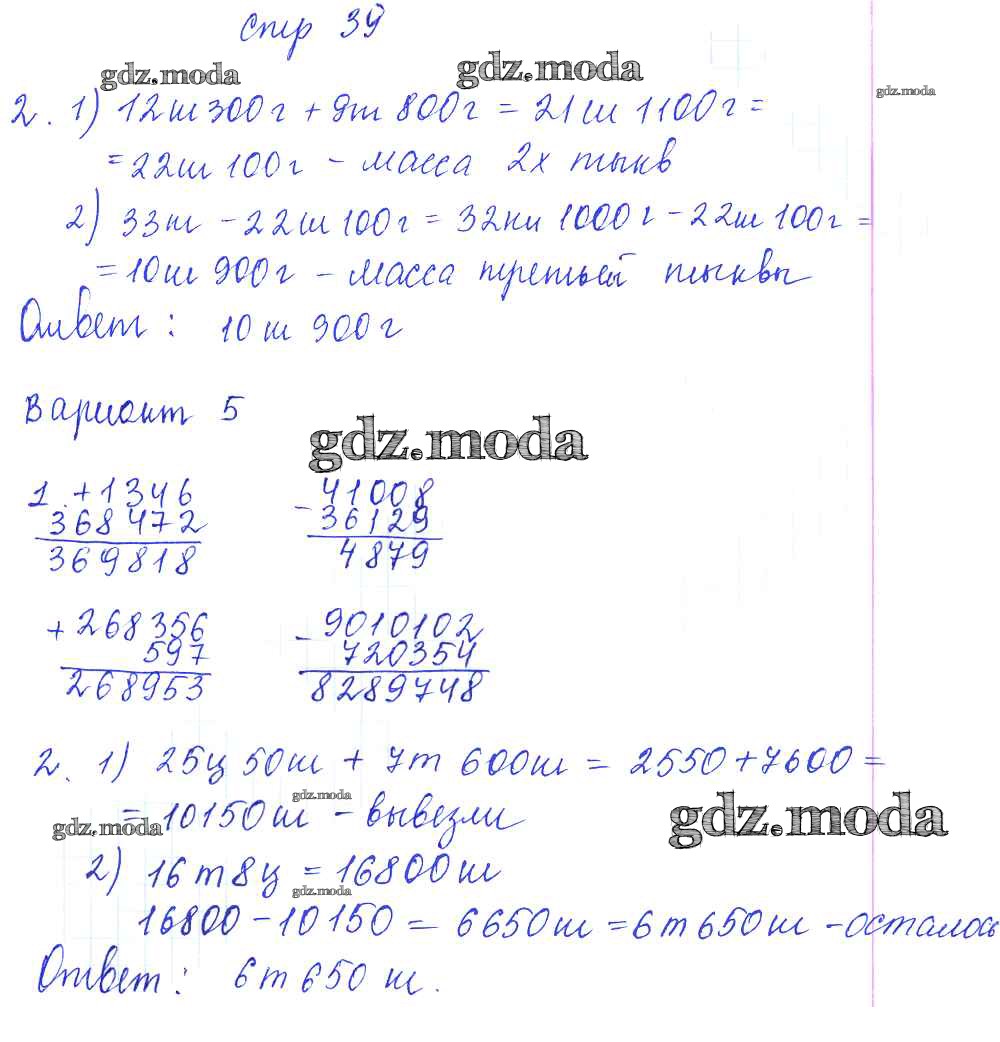 ГДЗ решение к заданию № 39 Математика 4 класс контрольные работы Рудницкая В.Н. (к уч. Моро) Экзамен 2014 Часть 1, Часть 2 ФГОС бесплатно на гдз.мода!