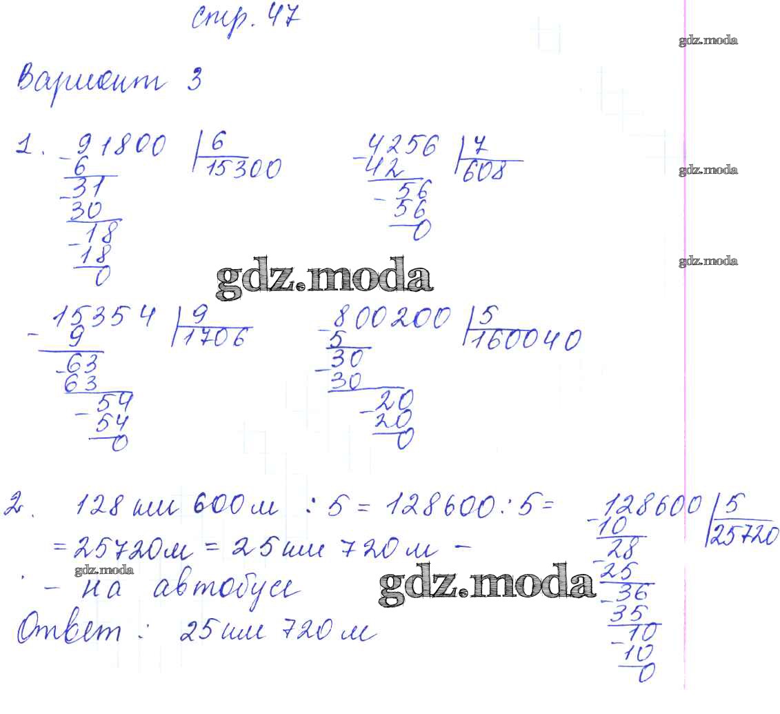 ГДЗ решение к заданию № 47 Математика 4 класс контрольные работы Рудницкая В.Н. (к уч. Моро) Экзамен 2014 Часть 1, Часть 2 ФГОС бесплатно на гдз.мода!