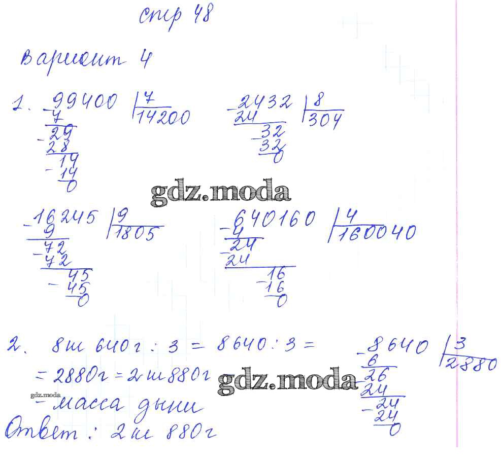 ГДЗ решение к заданию № 48 Математика 4 класс контрольные работы Рудницкая В.Н. (к уч. Моро) Экзамен 2014 Часть 1, Часть 2 ФГОС бесплатно на гдз.мода!