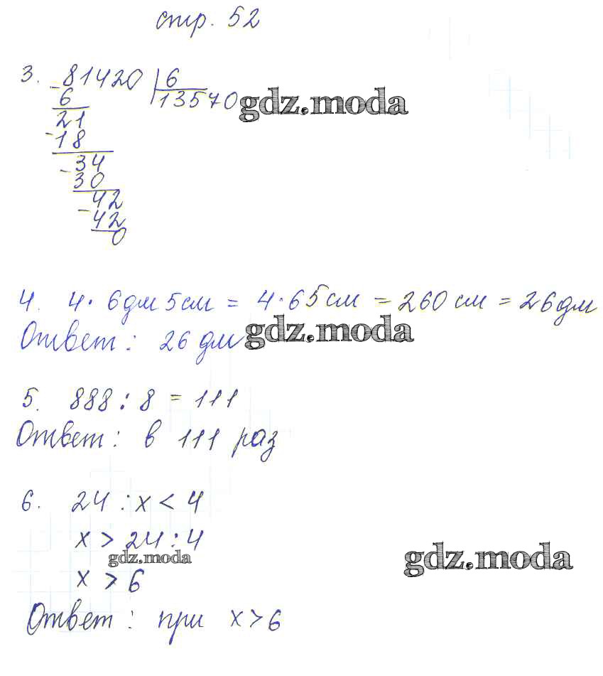 ГДЗ решение к заданию № 52 Математика 4 класс контрольные работы Рудницкая В.Н. (к уч. Моро) Экзамен 2014 Часть 1, Часть 2 ФГОС бесплатно на гдз.мода!