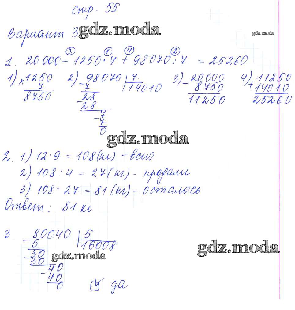 ГДЗ решение к заданию № 55 Математика 4 класс контрольные работы Рудницкая В.Н. (к уч. Моро) Экзамен 2014 Часть 1, Часть 2 ФГОС бесплатно на гдз.мода!