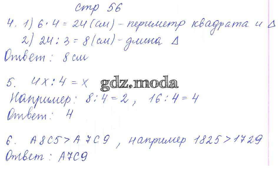 ГДЗ решение к заданию № 56 Математика 4 класс контрольные работы Рудницкая В.Н. (к уч. Моро) Экзамен 2014 Часть 1, Часть 2 ФГОС бесплатно на гдз.мода!