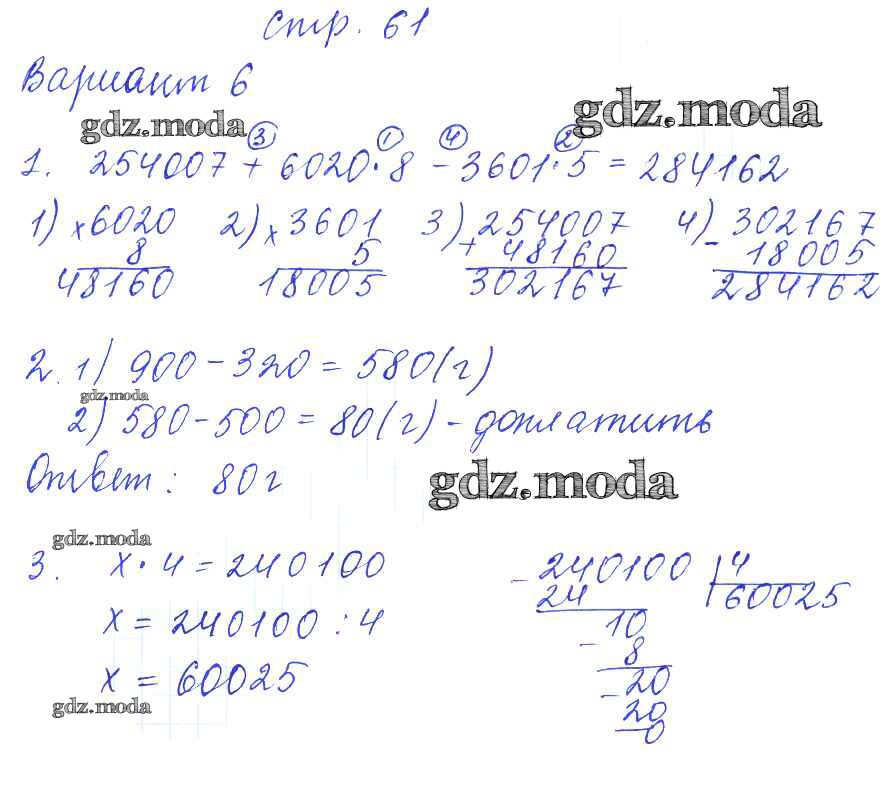 ГДЗ решение к заданию № 61 Математика 4 класс контрольные работы Рудницкая В.Н. (к уч. Моро) Экзамен 2014 Часть 1, Часть 2 ФГОС бесплатно на гдз.мода!