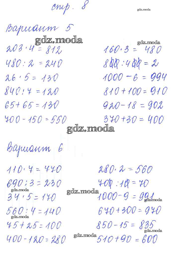 ГДЗ решение к заданию № 8 Математика 4 класс контрольные работы Рудницкая В.Н. (к уч. Моро) Экзамен 2014 Часть 1, Часть 2 ФГОС бесплатно на гдз.мода!