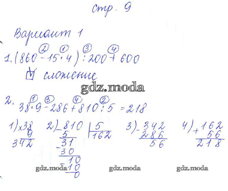 ГДЗ решение к заданию № 9 Математика 4 класс контрольные работы Рудницкая В.Н. (к уч. Моро) Экзамен 2014 Часть 1, Часть 2 ФГОС бесплатно на гдз.мода!
