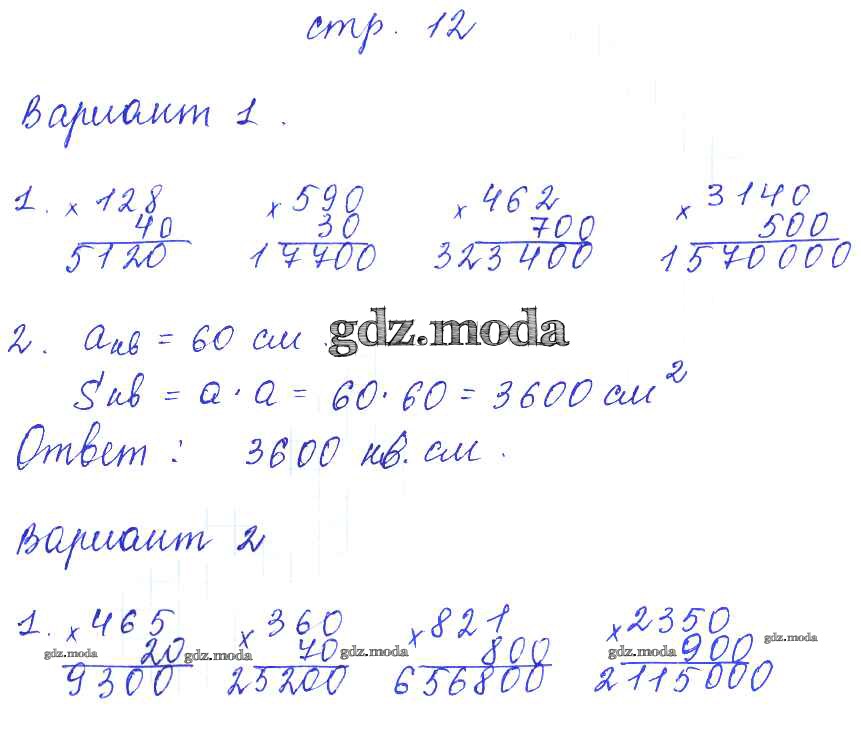 ГДЗ решение к заданию № 12 Математика 4 класс контрольные работы Рудницкая В.Н. (к уч. Моро) Экзамен 2014 Часть 1, Часть 2 ФГОС бесплатно на гдз.мода!