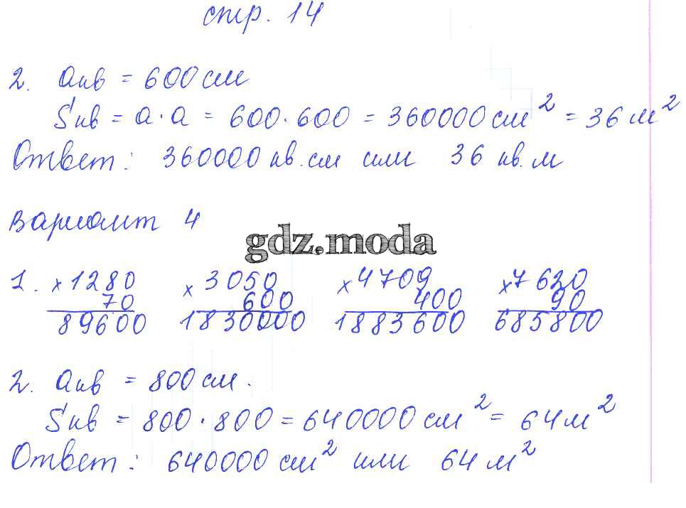 ГДЗ решение к заданию № 14 Математика 4 класс контрольные работы Рудницкая В.Н. (к уч. Моро) Экзамен 2014 Часть 1, Часть 2 ФГОС бесплатно на гдз.мода!