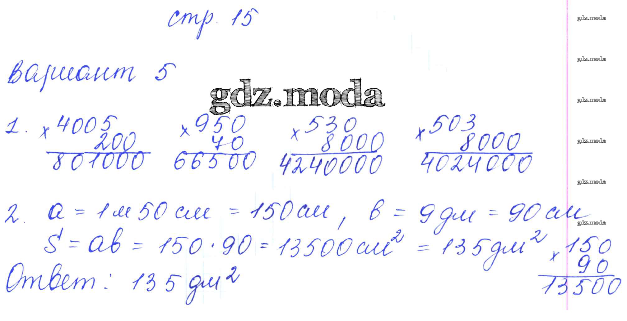 ГДЗ решение к заданию № 15 Математика 4 класс контрольные работы Рудницкая В.Н. (к уч. Моро) Экзамен 2014 Часть 1, Часть 2 ФГОС бесплатно на гдз.мода!