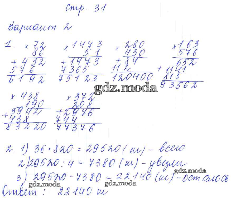 ГДЗ решение к заданию № 31 Математика 4 класс контрольные работы Рудницкая В.Н. (к уч. Моро) Экзамен 2014 Часть 1, Часть 2 ФГОС бесплатно на гдз.мода!