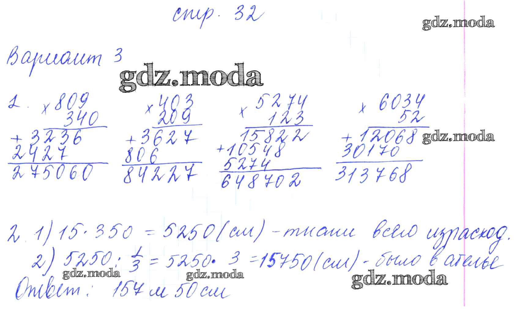 ГДЗ решение к заданию № 32 Математика 4 класс контрольные работы Рудницкая В.Н. (к уч. Моро) Экзамен 2014 Часть 1, Часть 2 ФГОС бесплатно на гдз.мода!