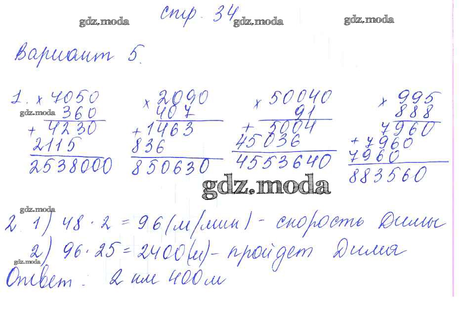 ГДЗ решение к заданию № 34 Математика 4 класс контрольные работы Рудницкая В.Н. (к уч. Моро) Экзамен 2014 Часть 1, Часть 2 ФГОС бесплатно на гдз.мода!