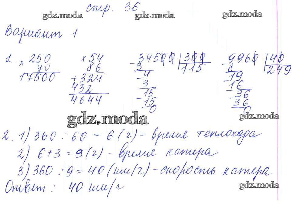 ГДЗ решение к заданию № 36 Математика 4 класс контрольные работы Рудницкая В.Н. (к уч. Моро) Экзамен 2014 Часть 1, Часть 2 ФГОС бесплатно на гдз.мода!