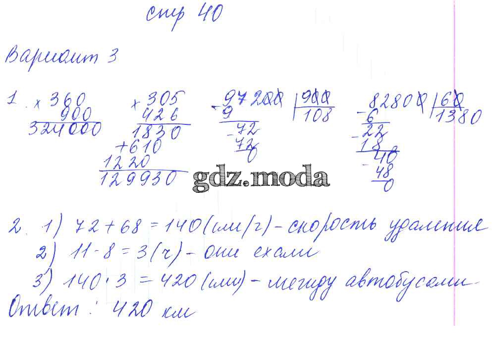 ГДЗ решение к заданию № 40 Математика 4 класс контрольные работы Рудницкая В.Н. (к уч. Моро) Экзамен 2014 Часть 1, Часть 2 ФГОС бесплатно на гдз.мода!