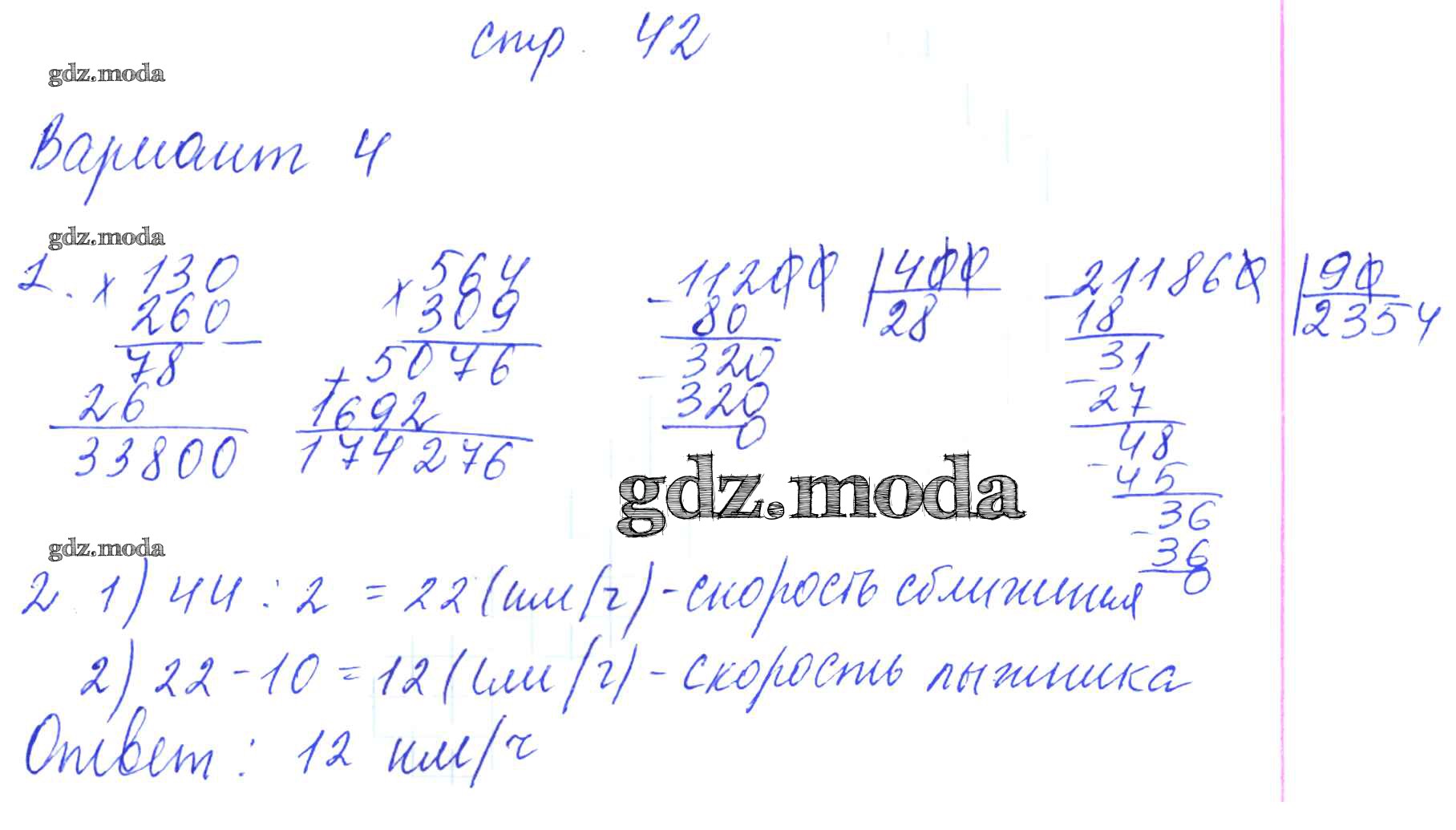 ГДЗ решение к заданию № 42 Математика 4 класс контрольные работы Рудницкая В.Н. (к уч. Моро) Экзамен 2014 Часть 1, Часть 2 ФГОС бесплатно на гдз.мода!