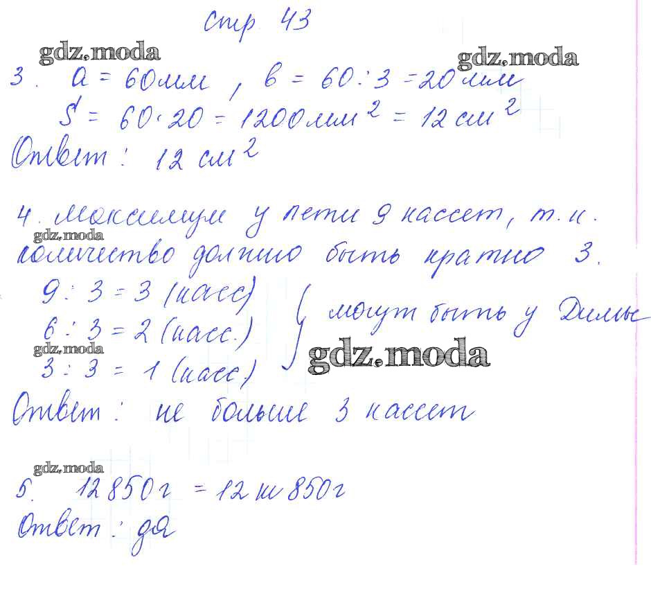 ГДЗ решение к заданию № 43 Математика 4 класс контрольные работы Рудницкая В.Н. (к уч. Моро) Экзамен 2014 Часть 1, Часть 2 ФГОС бесплатно на гдз.мода!