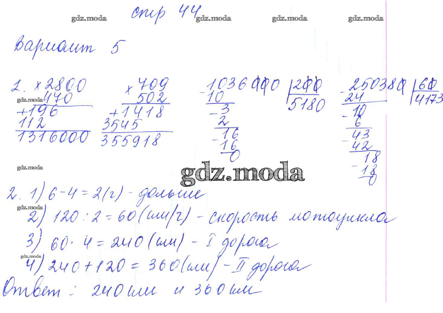 ГДЗ решение к заданию № 44 Математика 4 класс контрольные работы Рудницкая В.Н. (к уч. Моро) Экзамен 2014 Часть 1, Часть 2 ФГОС бесплатно на гдз.мода!