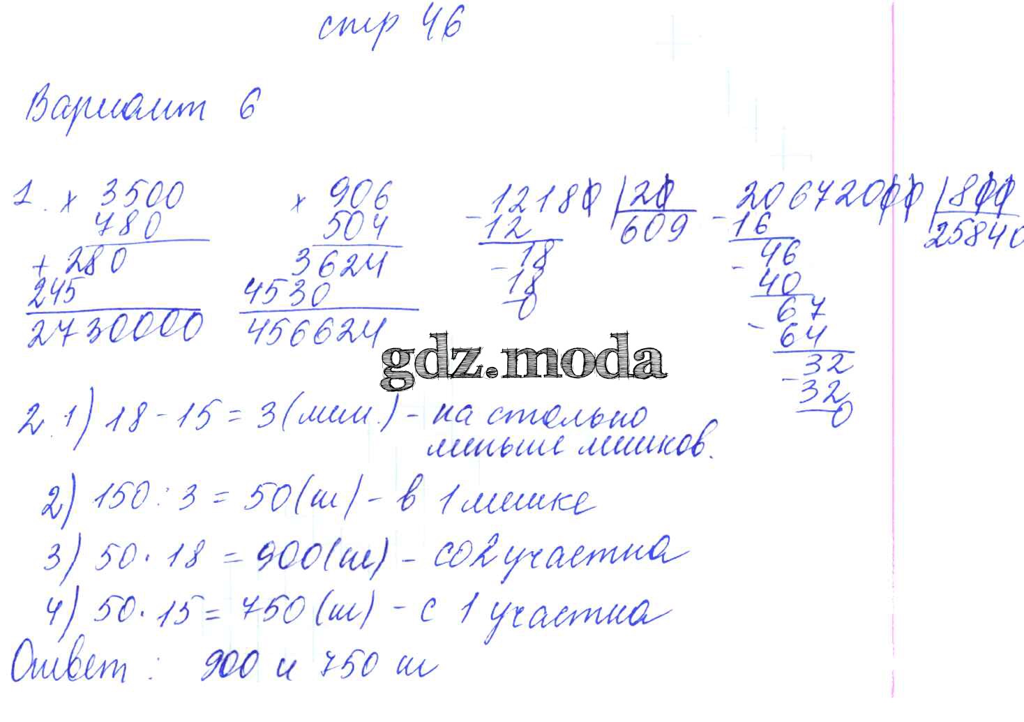 ГДЗ решение к заданию № 46 Математика 4 класс контрольные работы Рудницкая В.Н. (к уч. Моро) Экзамен 2014 Часть 1, Часть 2 ФГОС бесплатно на гдз.мода!