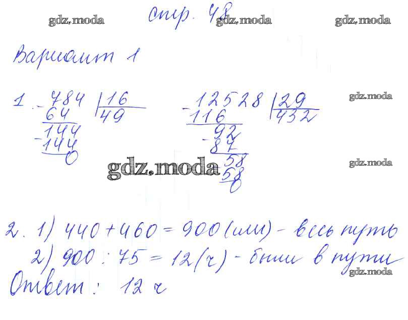 ГДЗ решение к заданию № 48 Математика 4 класс контрольные работы Рудницкая В.Н. (к уч. Моро) Экзамен 2014 Часть 1, Часть 2 ФГОС бесплатно на гдз.мода!