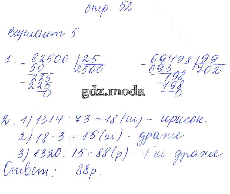 ГДЗ решение к заданию № 52 Математика 4 класс контрольные работы Рудницкая В.Н. (к уч. Моро) Экзамен 2014 Часть 1, Часть 2 ФГОС бесплатно на гдз.мода!
