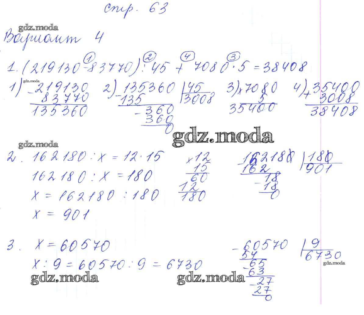 ГДЗ решение к заданию № 63 Математика 4 класс контрольные работы Рудницкая В.Н. (к уч. Моро) Экзамен 2014 Часть 1, Часть 2 ФГОС бесплатно на гдз.мода!