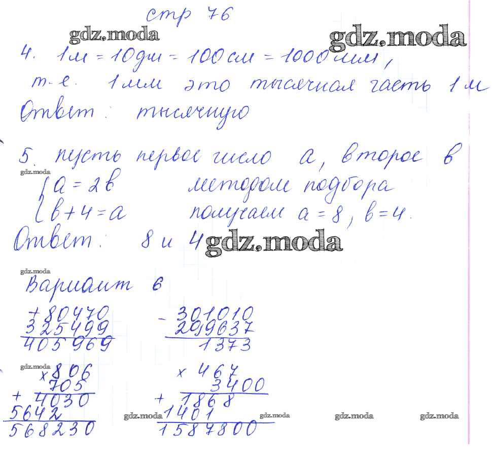 ГДЗ решение к заданию № 76 Математика 4 класс контрольные работы Рудницкая В.Н. (к уч. Моро) Экзамен 2014 Часть 1, Часть 2 ФГОС бесплатно на гдз.мода!
