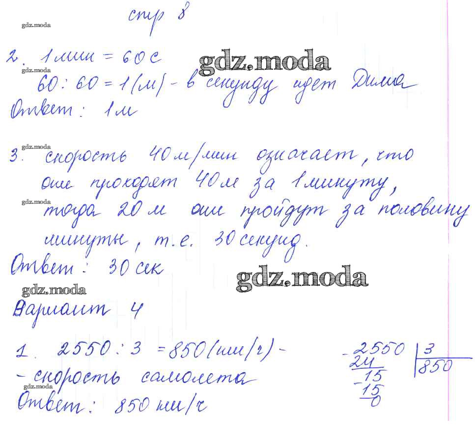 ОТВЕТ на задание № 8 Контрольные работы по Математике 4 класс Рудницкая УМК