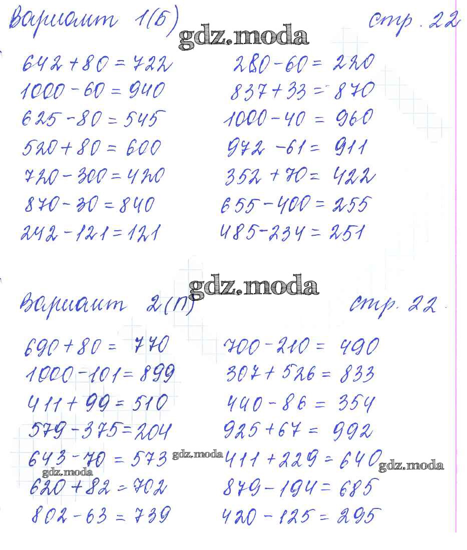 ГДЗ решение к заданию № 22 Математика 4 класс самостоятельные работы Самсонова Л.Ю. Экзамен 2011 Часть 1, Часть 2 ФГОС бесплатно на гдз.мода!