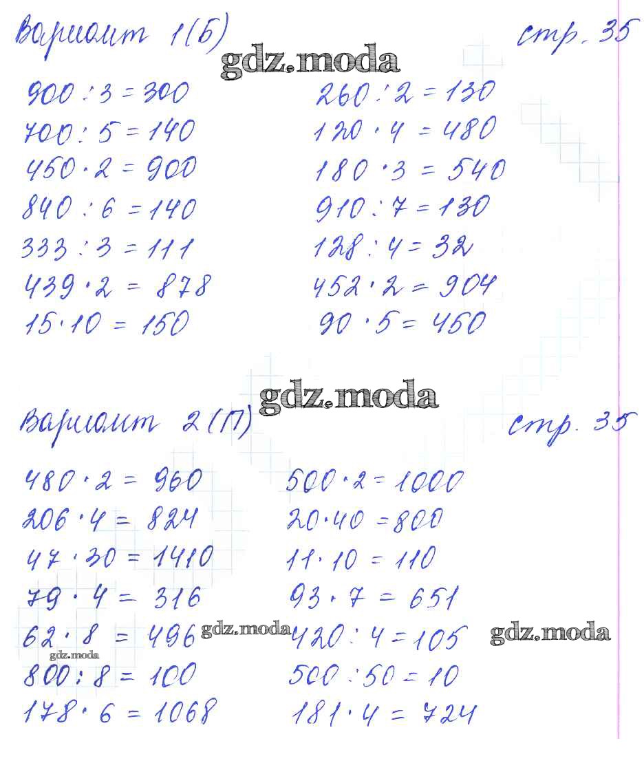 ГДЗ решение к заданию № 35 Математика 4 класс самостоятельные работы Самсонова Л.Ю. Экзамен 2011 Часть 1, Часть 2 ФГОС бесплатно на гдз.мода!