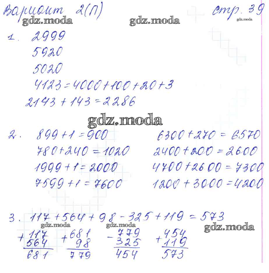 ГДЗ решение к заданию № 39 Математика 4 класс самостоятельные работы Самсонова Л.Ю. Экзамен 2011 Часть 1, Часть 2 ФГОС бесплатно на гдз.мода!