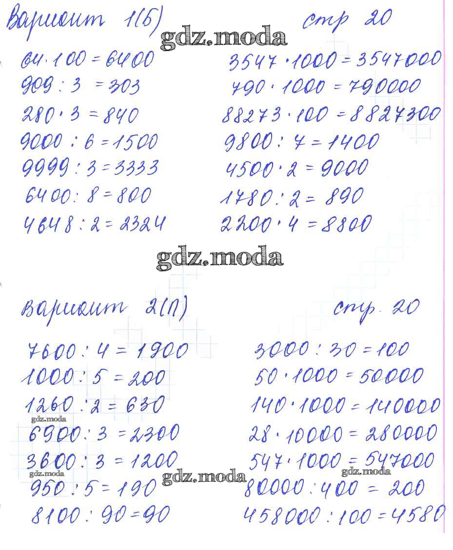 ГДЗ решение к заданию № 20 Математика 4 класс самостоятельные работы Самсонова Л.Ю. Экзамен 2011 Часть 1, Часть 2 ФГОС бесплатно на гдз.мода!