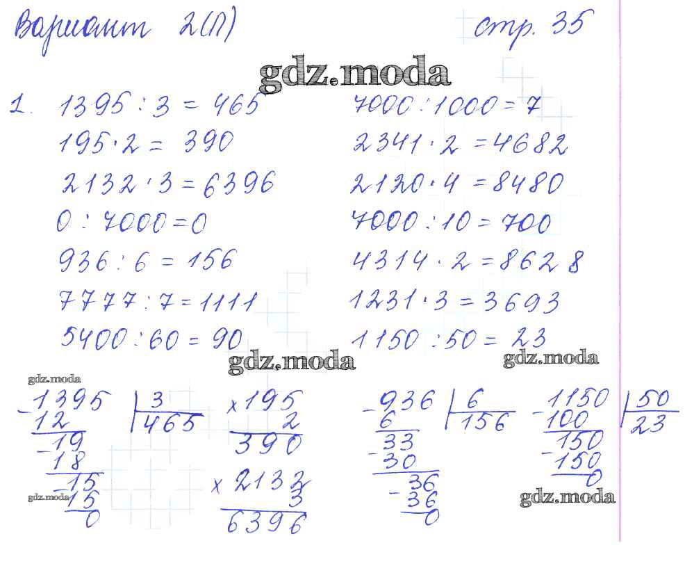 ГДЗ решение к заданию № 35 Математика 4 класс самостоятельные работы Самсонова Л.Ю. Экзамен 2011 Часть 1, Часть 2 ФГОС бесплатно на гдз.мода!