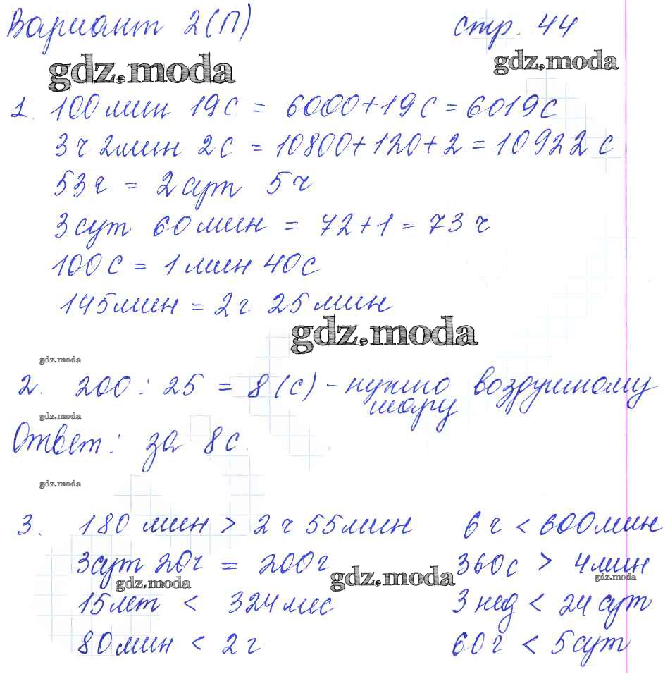 ГДЗ решение к заданию № 44 Математика 4 класс самостоятельные работы Самсонова Л.Ю. Экзамен 2011 Часть 1, Часть 2 ФГОС бесплатно на гдз.мода!