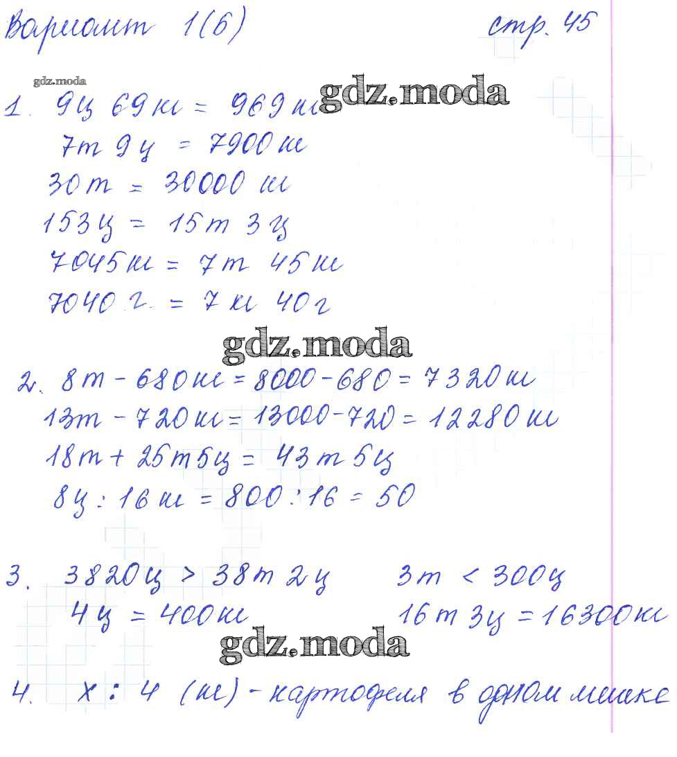 ГДЗ решение к заданию № 45 Математика 4 класс самостоятельные работы Самсонова Л.Ю. Экзамен 2011 Часть 1, Часть 2 ФГОС бесплатно на гдз.мода!