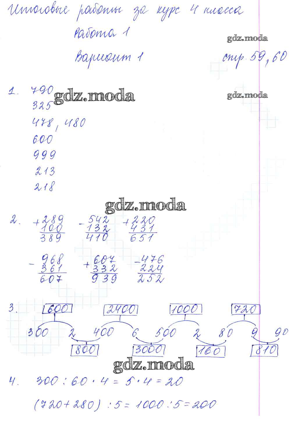 ГДЗ решение к заданию № 59-60 Математика 4 класс самостоятельные работы Самсонова Л.Ю. Экзамен 2011 Часть 1, Часть 2 ФГОС бесплатно на гдз.мода!