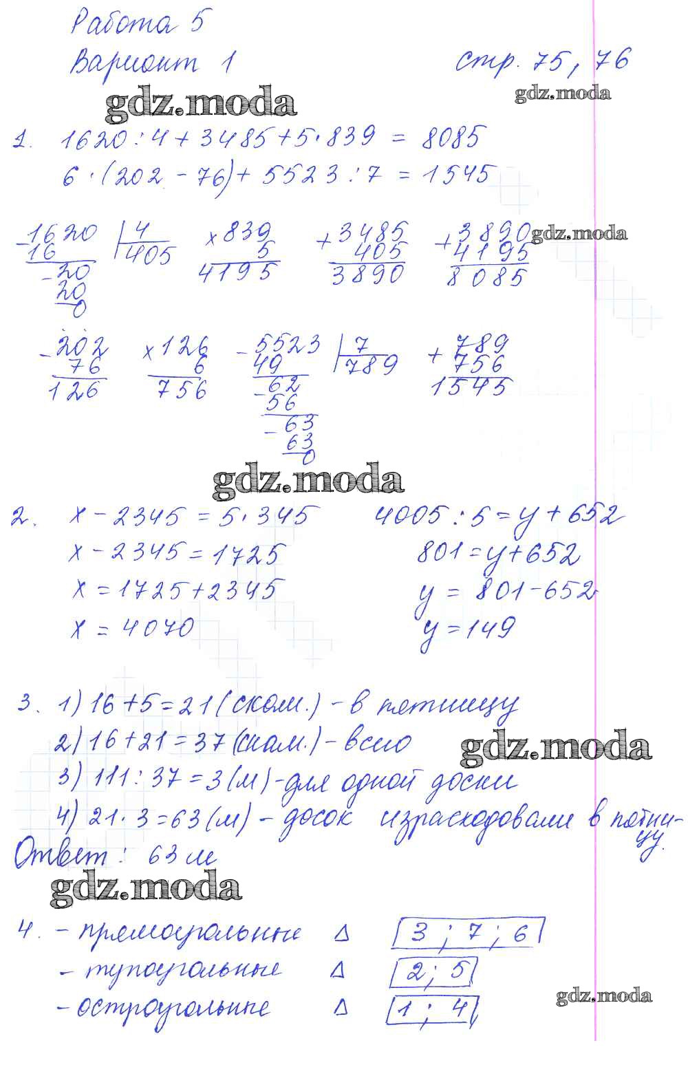 ГДЗ решение к заданию № 75-76 Математика 4 класс самостоятельные работы Самсонова Л.Ю. Экзамен 2011 Часть 1, Часть 2 ФГОС бесплатно на гдз.мода!