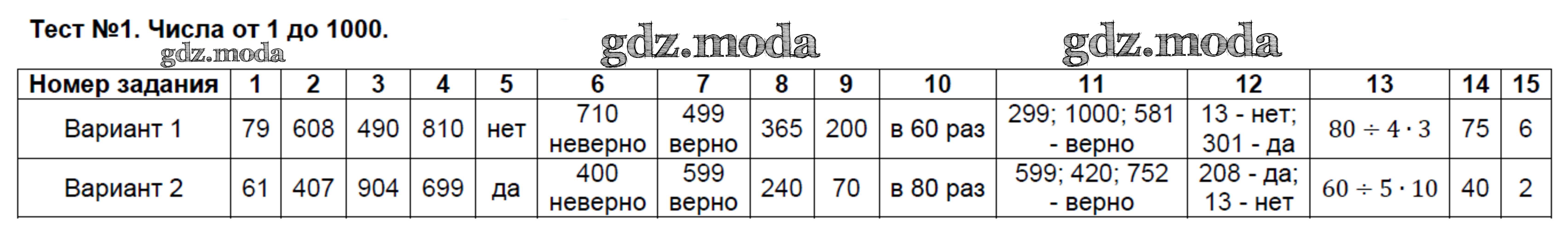 ОТВЕТ на задание № 1 Тесты по Математике 4 класс Рудницкая УМК