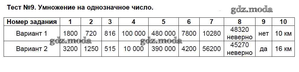 ГДЗ решение к заданию № 9 Математика 4 класс тесты Рудницкая В.Н. ( к уч. Моро) Экзамен 2016 Часть 1, Часть 2 ФГОС бесплатно на гдз.мода!