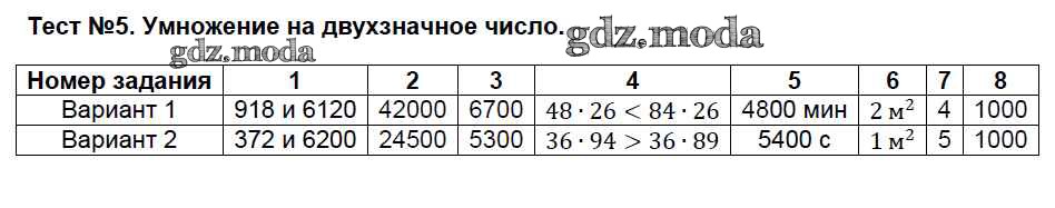 ГДЗ решение к заданию № 5 Математика 4 класс тесты Рудницкая В.Н. ( к уч. Моро) Экзамен 2016 Часть 1, Часть 2 ФГОС бесплатно на гдз.мода!