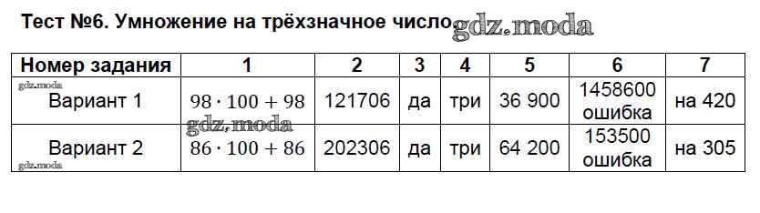 ГДЗ решение к заданию № 6 Математика 4 класс тесты Рудницкая В.Н. ( к уч. Моро) Экзамен 2016 Часть 1, Часть 2 ФГОС бесплатно на гдз.мода!