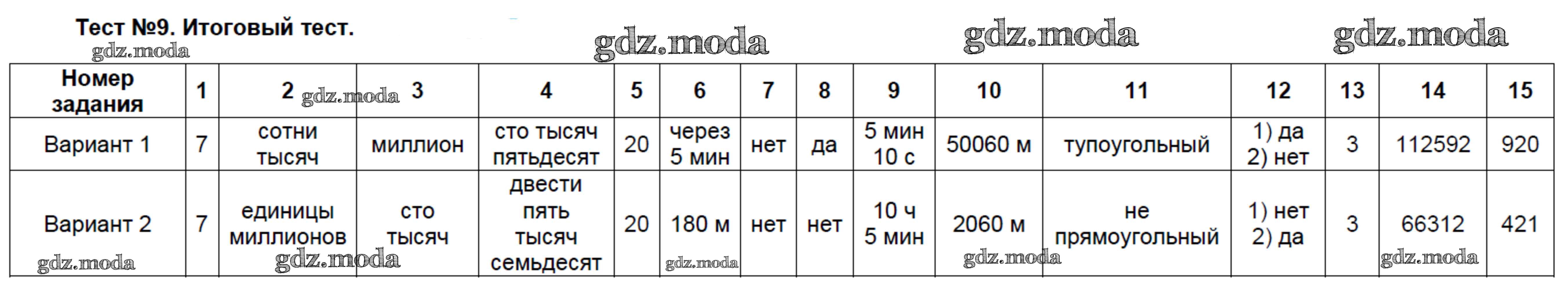 ГДЗ решение к заданию № 9 Математика 4 класс тесты Рудницкая В.Н. ( к уч. Моро) Экзамен 2016 Часть 1, Часть 2 ФГОС бесплатно на гдз.мода!