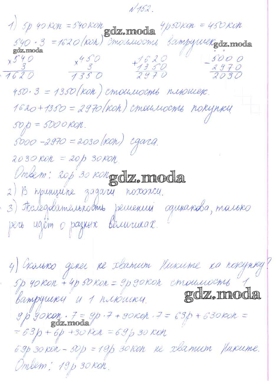 ГДЗ решение к заданию № 152 Математика 4 класс Аргинская И.И. Фёдоров 2014 Часть 1, Часть 2 ФГОС бесплатно на гдз.мода!